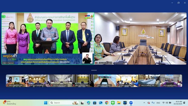 รายการพฤหัสเช้า ข่าว สพฐ. ครั้งที่ 41/2568 ประจำวันพฤหัสบดีที่ 16 ตุลาคม 2568 นายวัชระ นรินทร์นอก ผู้อำนวยการสำนักงานเขตพื้นที่การศึกษาประถมศึกษาชลบุรี เขต 3 พร้อมด้วยนางพัณณ์ชิตา กนกพงษ์เสถียร รองผู้อำนวยการสำนักงานเขตพื้นที่การศึกษาประถมศึกษาชลบุรี เขต 3 นายทินกร คลังจินดา รองผู้อำนวยการสำนักงานเขตพื้นที่การศึกษาประถมศึกษาชลบุรี เขต 3 ผู้อำนวยการกลุ่ม/หน่วย เข้าร่วมประชุมทางไกล Video Conference ผ่านรายการ พฤหัสเช้า ข่าว สพฐ. ครั้งที่ 41/2568 พร้อมกันนี้ได้ประชุมคณะกรรมการบริหาร ของสำนักงานเขตพื้นที่การศึกษาประถมศึกษาชลบุรี เขต 3 ครั้งที่ 29/2568 เพื่อติดตามงานตามนโยบายของสำนักงานคณะกรรมการการศึกษาขั้นพื้นฐาน ณ ห้องประชุมพัทยา สำนักงานเขตพื้นที่การศึกษาประถมศึกษาชลบุรี เขต 3 https://www.facebook.com/share/p/1GSgCDjm96/