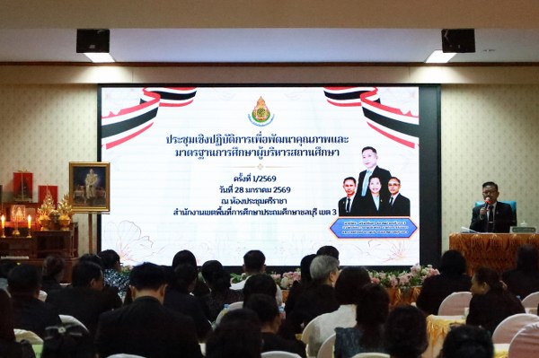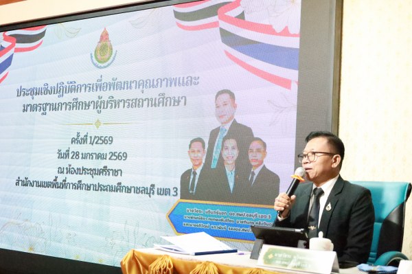 นายวัชระ นรินทร์นอก ผอ.สพป.ชลบุรี เขต 3 เป็นประธานการประชุมเชิงปฏิบัติการเพื่อพัฒนาคุณภาพและมาตรฐานการศึกษาผู้บริหารสถานศึกษา ครั้งที่ 1/2569 พร้อมด้วยนางพัณณ์ชิตา กนกพงษ์เสถียร รอง สพป.ชลบุรี เขต 3 นายทินกร คลังจินดา รอง สพป.ชลบุรี เขต 3 และนายอภิวัฒน์ แถวพันธ์ รอง ผอ.สพป.ชลบุรี เขต 3 ผู้อำนวยการกลุ่ม ผู้อำนวยการสถานศึกษา บุคลากรที่เกี่ยวข้องเข้าร่วมฯ ณ ห้องประชุมศรีราชา สพป.ชลบุรี เขต 3