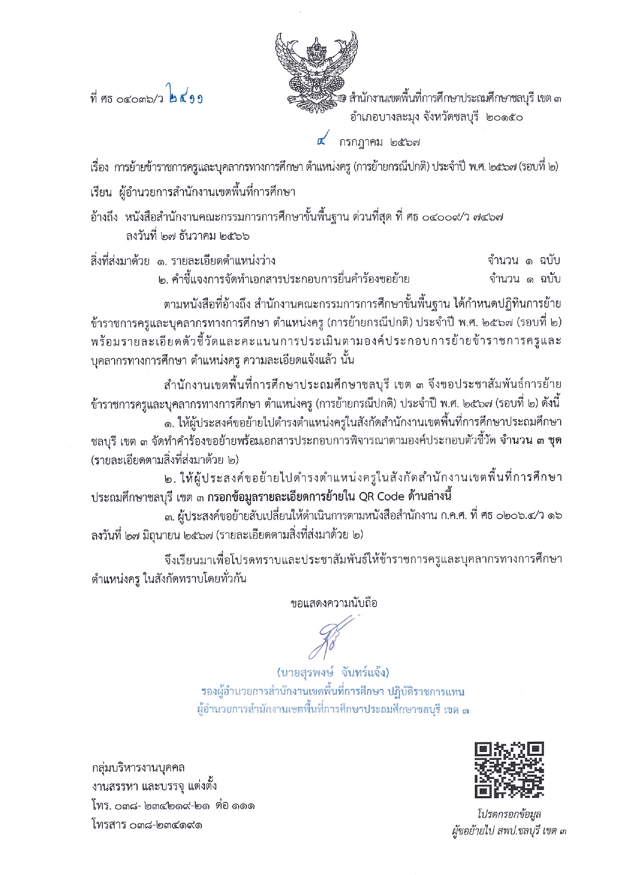 การย้ายข้าราชการครูและบุคลากรทางการศึกษา ตำแหน่งครู (การย้ายกรณีปกติ) ประจำปี พ.ศ. 2567 (รอบที่ 2)