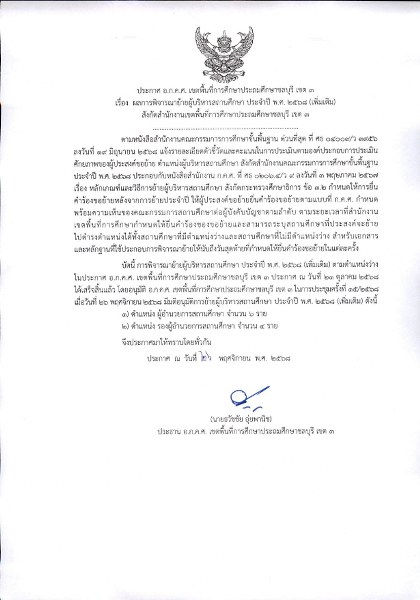 ประกาศผลการพิจารณาย้ายผู้บริหารสถานศึกษา ประจำปี พ.ศ. 2568 (เพิ่มเติม) สังกัดสำนักงานเขตพื้นที่การศึกษาประถมศึกษาชลบุรี เขต 3 https://www.facebook.com/share/p/1AQd6srYPH/
