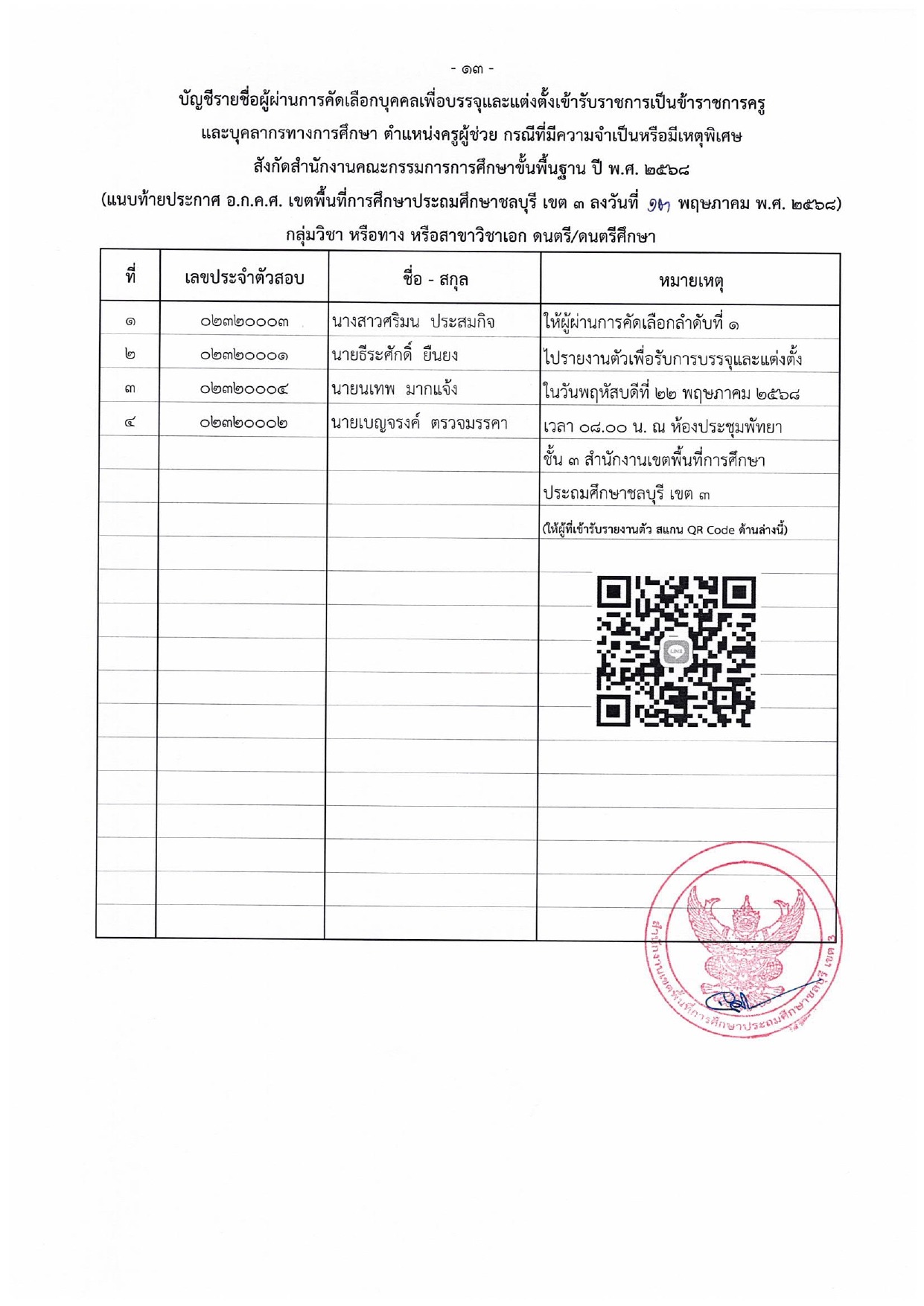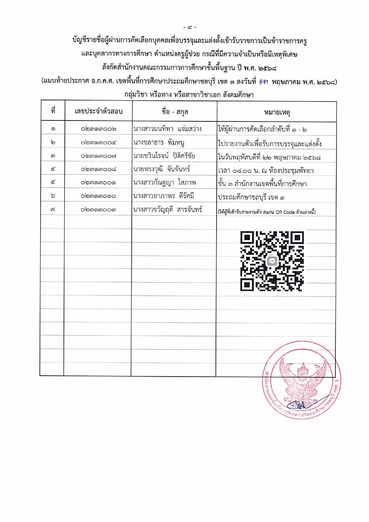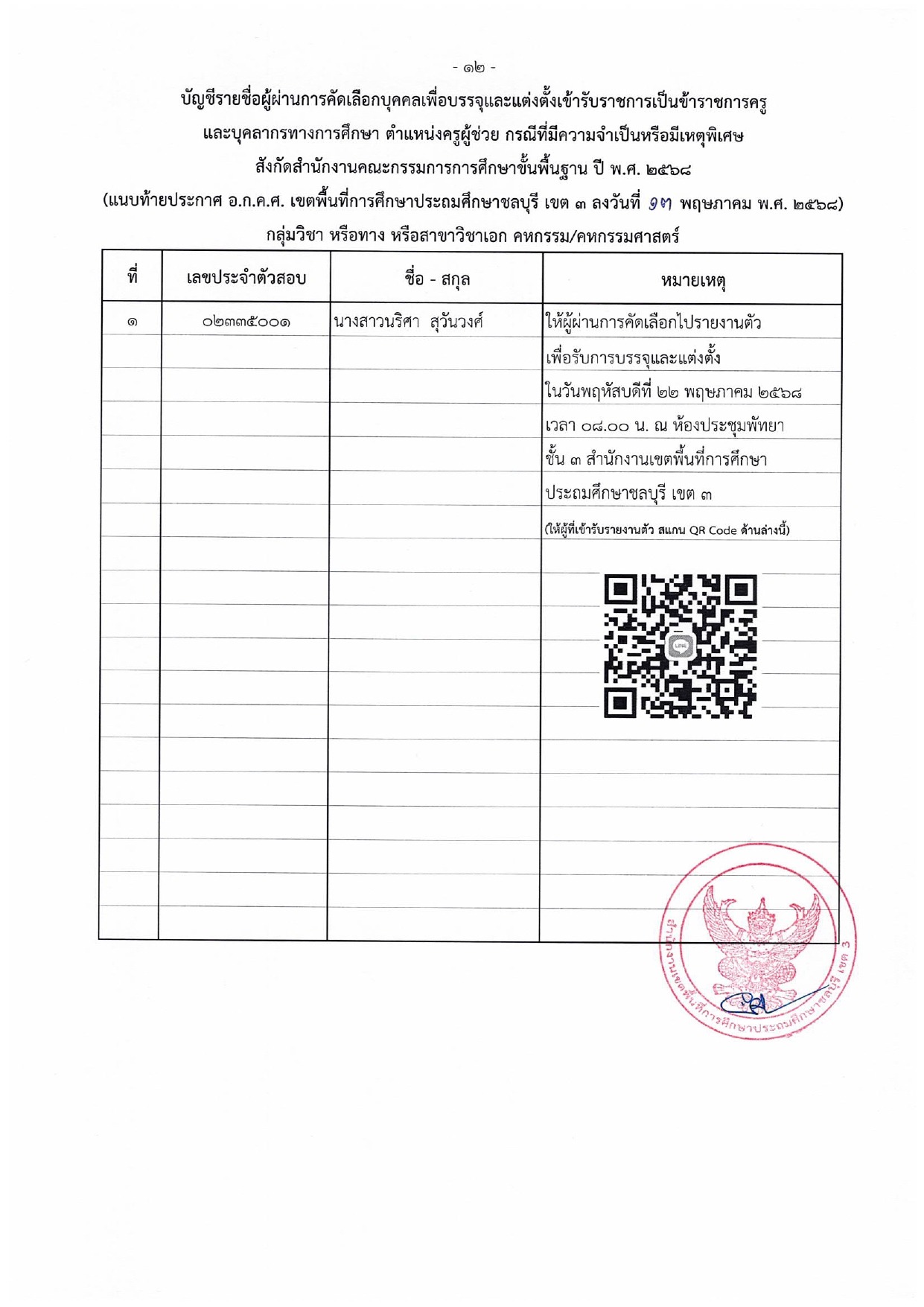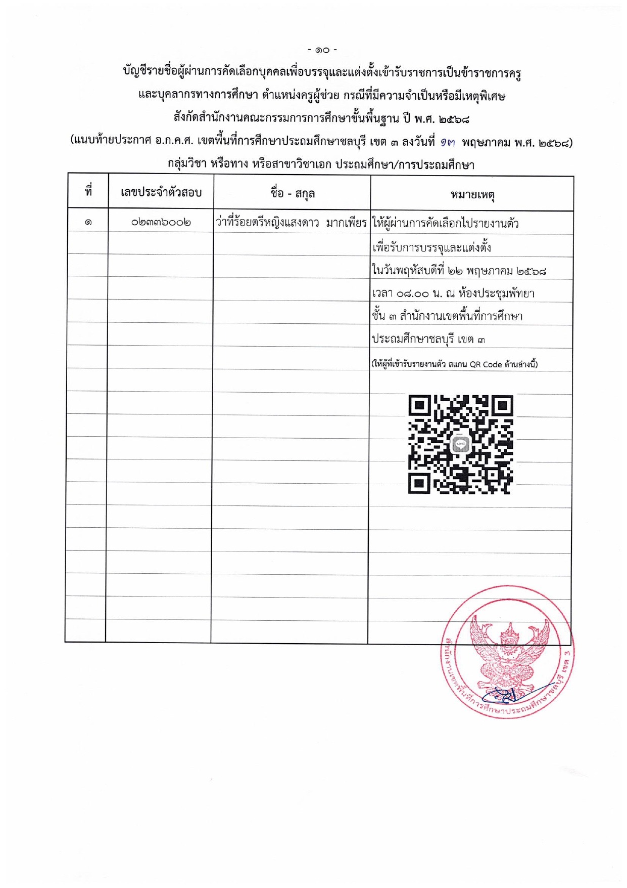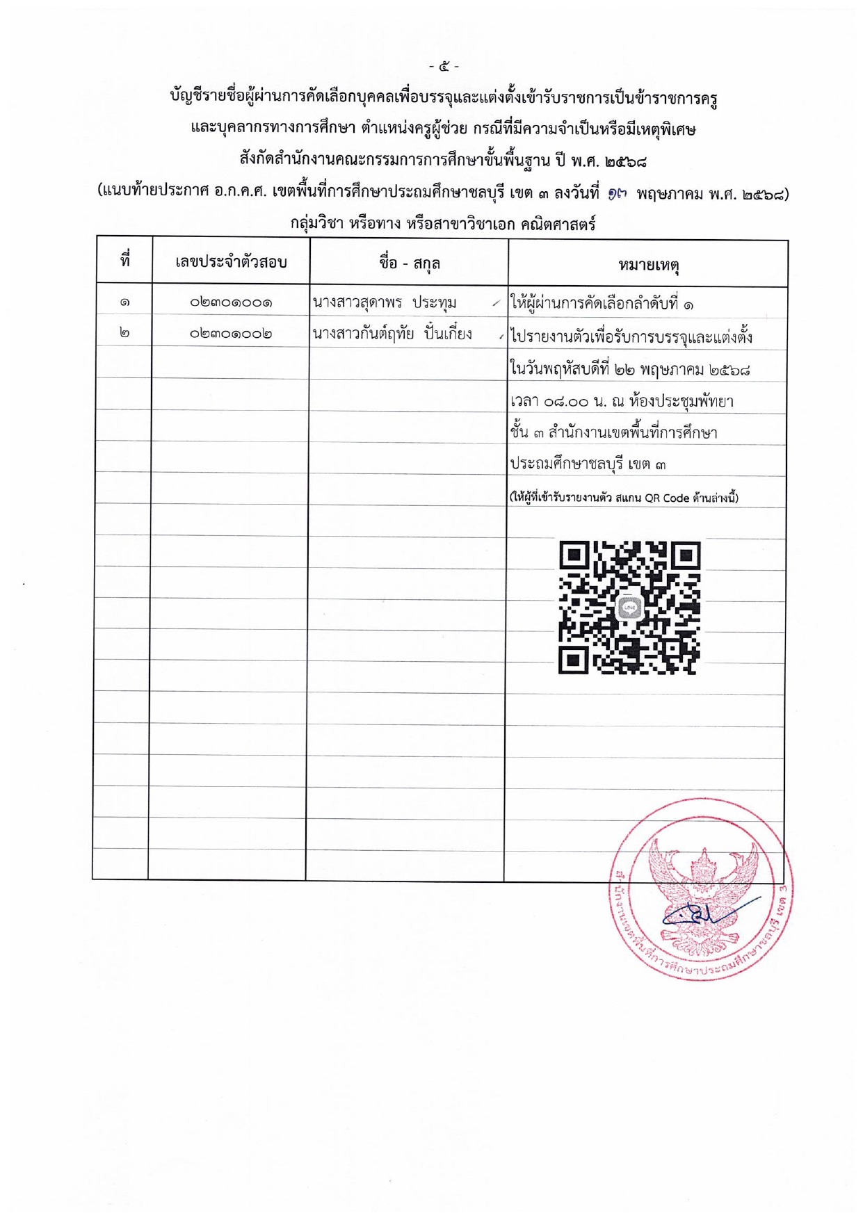 📣ประกาศ อ.ก.ค.ศ.เขตพื้นที่การศึกษาประถมศึกษาชลบุรี เขต 3 ประกาศรายชื่อผู้ผ่านการคัดเลือกบุคคลเพื่อบรรจุและแต่งตั้งเข้ารับราชการเป็นข้าราชการครูและบุคลากรทางการศึกษา ตำแหน่งครูผู้ช่วย กรณีที่มีความจำเป็นหรือมีเหตุพิเศษสังกัดสำนักงานคณะกรรมการการศึกษาขั้นพื้นฐาน ปี พ.ศ. 2568 http://www.amss.chon3.go.th/modules/mail/upload_files/11009000865021747132115_1.pdf