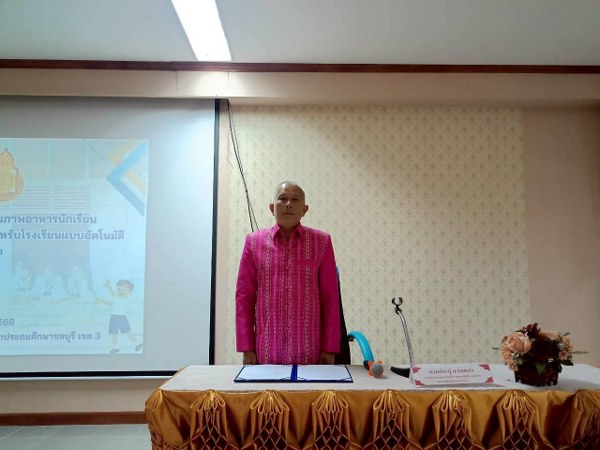 นายวัชระ นรินทร์นอก ผู้อำนวยการสำนักงานเขตพื้นที่การศึกษาประถมศึกษาชลบุรี เขต 3 มอบหมายให้นายประดู่ นามเหลา รองผู้อำนวยการสำนักงานเขตพื้นที่การศึกษาประถมศึกษาชลบุรี เขต 3 เป็นประธานเปิดอบรมโครงการประชุมเชิงปฏิบัติการพัฒนาคุณภาพอาหารนักเรียน (โดยใช้ระบบแนะนำจัดสำรับอาหารกลางวันสำหรับโรงเรียน แบบอัตโนมัติ Thai School Lunch) โดยมีวัตถุประสงค์เพื่อให้ครูพัฒนาศักยภาพและเพิ่มทักษะ เสริมสร้างความรู้ ความเข้าใจ ช่วยลดภาระของครู ในการวางแผนอาหาร คำนวณวัตถุดิบ และค่าใช้จ่ายล่วงหน้าได้อย่างมีประสิทธิภาพ ทั้งนี้ได้รับความอนุเคราะห์วิทยากรจากศูนย์เทคโนโลยีอิเล็กทรอนิกส์และคอมพิวเตอร์แห่งชาติ (เนคเทค) ณ ห้องประชุมศรีราชา สำนักงานเขตพื้นที่การศึกษาประถมศึกษาชลบุรี เขต 3 https://web.facebook.com/share/p/1BGWqxgThq/