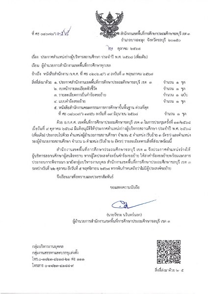 ประกาศตำแหน่งว่างผู้บริหารสถานศึกษา ประจำปี พ.ศ. 2568 (เพิ่มเติม)