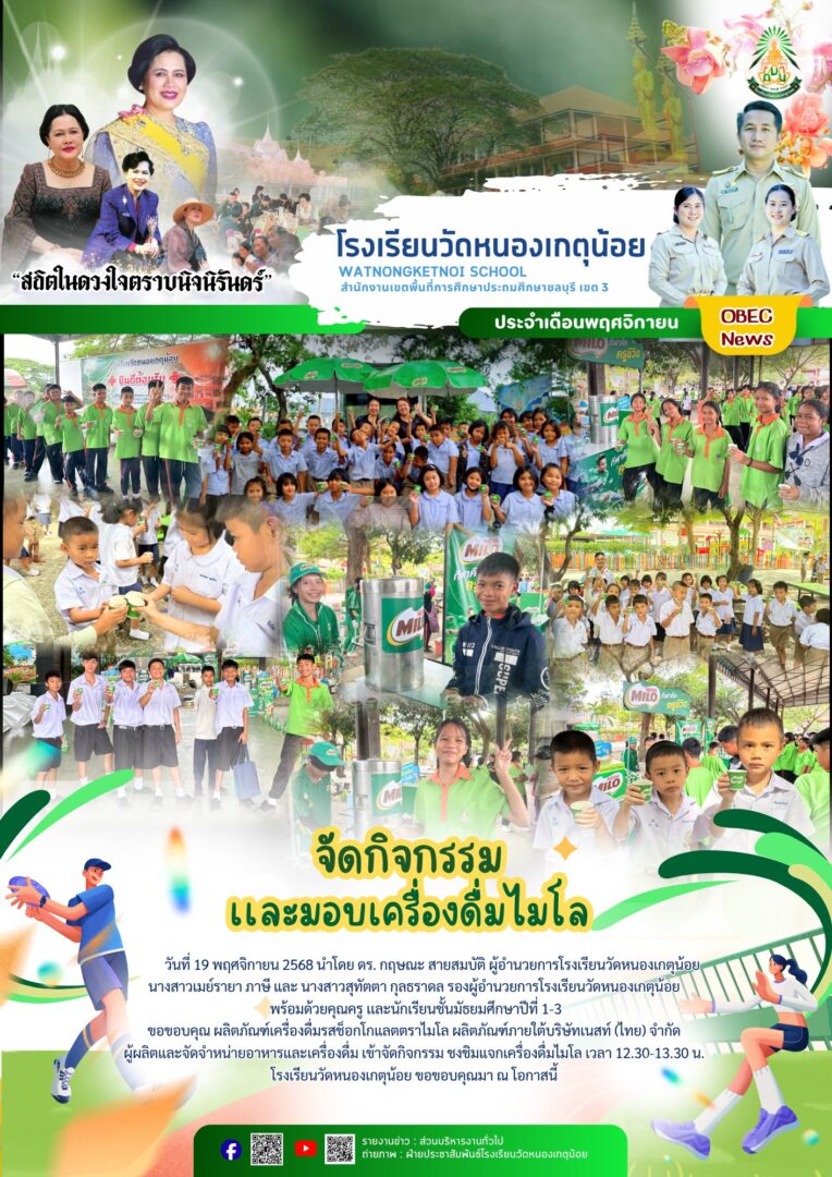 โรงเรียนวัดหนองเกตุน้อย นำนักเรียนเข้าร่วมกิจกรรมผลิตภัณฑ์เครื่องดื่มรสช็อกโกแลตตราไมโล จาก บริษัทเนสท์ (ไทย) จำกัด