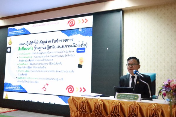 ข้าราชการและบุคลากรทางการศึกษา ดำเนินการจัดกิจกรรมเข้าแถวเคารพธงชาติ สวดมนต์ไหว้พระ และกล่าวปฏิญาณเขตสุจริต