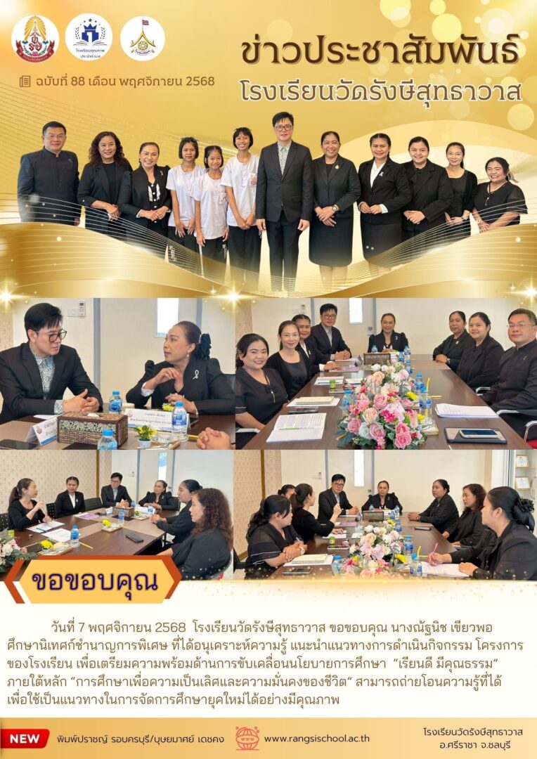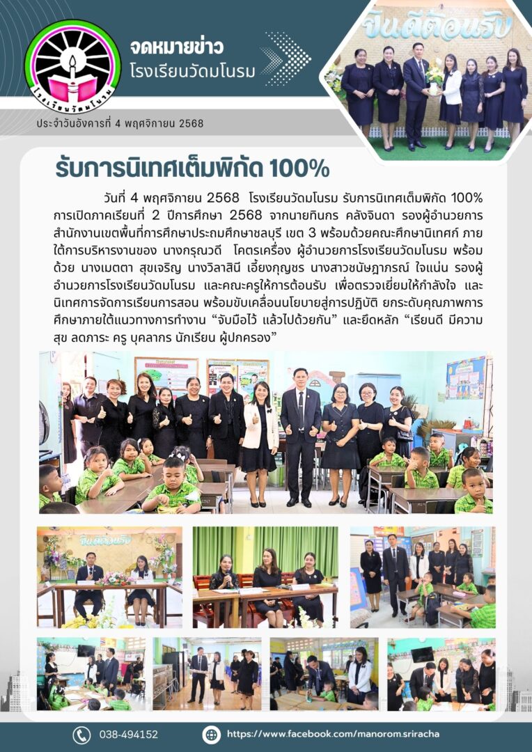 โรงเรียนวัดมโนรม รับการนิเทศเต็มพิกัด 100% การเปิดภาคเรียนที่ 2 ปีการศึกษา 2568 จากนายทินกร คลังจินดา รองผู้อำนวยการสำนักงานเขตพื้นที่การศึกษาประถมศึกษาชลบุรี เขต 3 พร้อมด้วยคณะศึกษานิเทศก์
