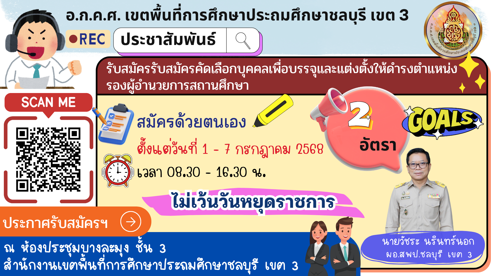 รับสมัครคัดเลือกบุคคลเข้าบรรจุและแต่งตั้งให้ดำรงตำแหน่งรองผู้อำนวยการสถานศึกษา สังกัดคณะกรรมการการศึกษาขั้นพื้นฐาน ปี พ.ศ. 2568