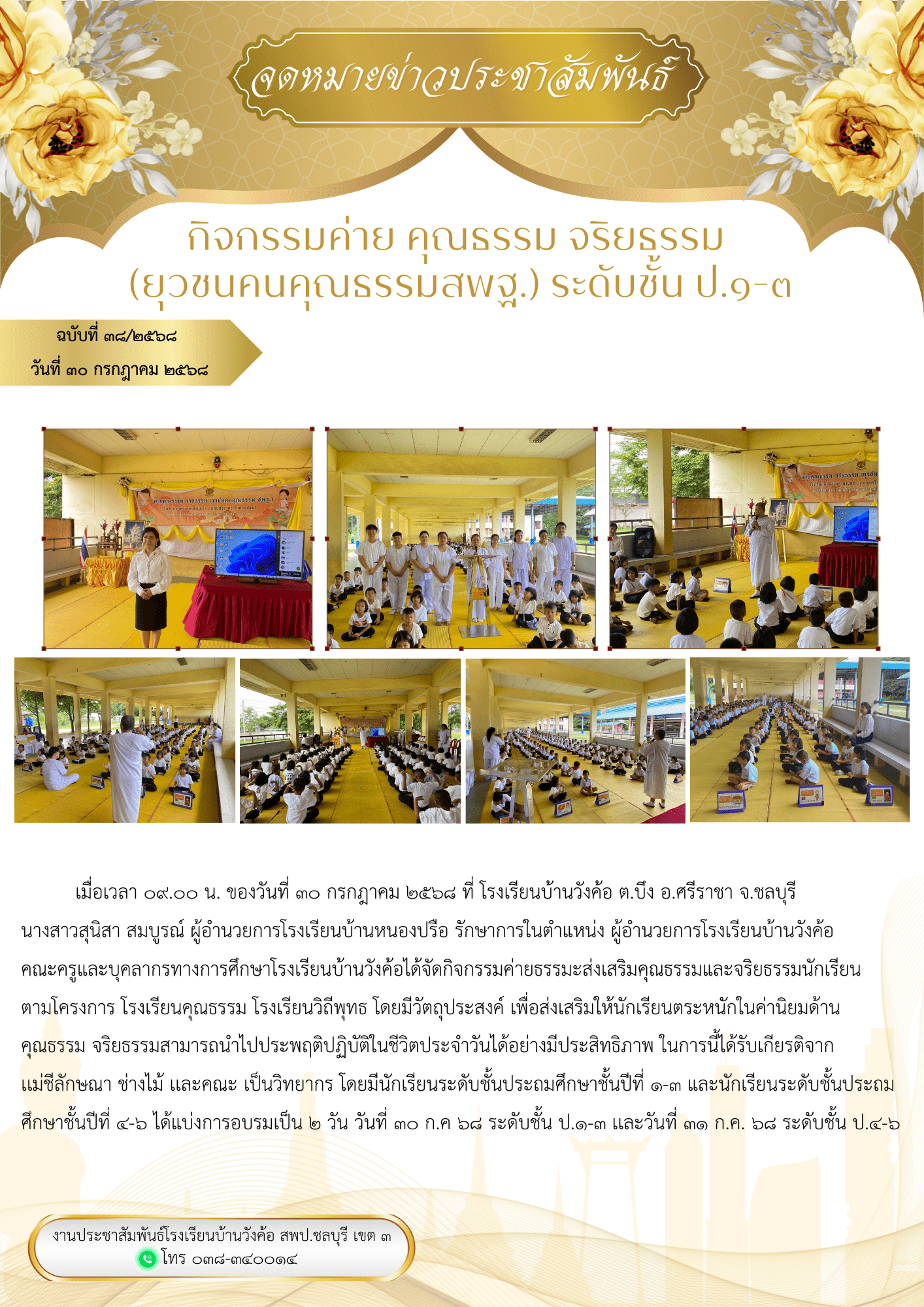 กิจกรรมค่าย คุณธรรม จริยธรรม ป.4-6 ปีการศึกษา 2568